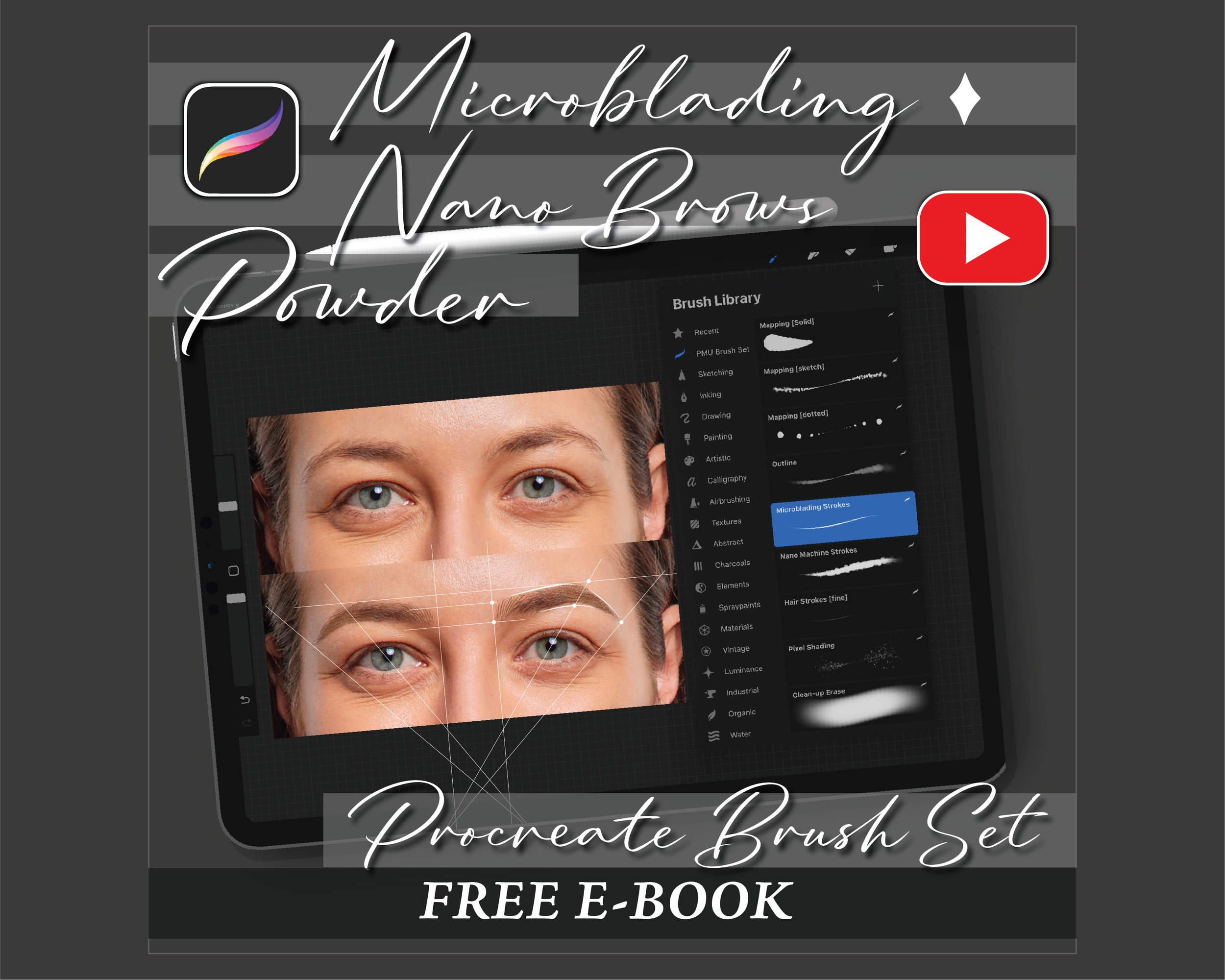 Procreate Brow Stamps for PMU Artists | Client Consult Kit + Nano, Powder & Combo Practice Brushes
